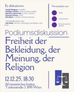 Kundgebung: Freedom for Ahmad!📆 Dienstag 16.12.2025🕛 12:30 - 14:00📍 Justizanstalt: Wickenburggasse 18-20, Wien📢 Organisiert: Arabischer Palästina-Club, Wien Freiheit für Ahmad! Freiheit für Palästina!Stopp die Kriminalisierung von Palästinaaktivistinnen!Stopp die Repression gegen die Palästina-Solidarität! ...