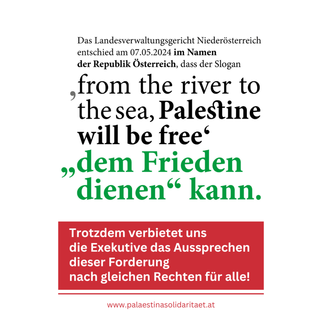 Am 7. Mai 2024 hat des Landesverwaltungsgericht Niederösterreich (LVWG) in St. Pölten die behördliche Untersagung der „Mahnwache und Demo für einen sofortigen Waffenstilland in Gaza“ als rechtswidrig aufgehoben.