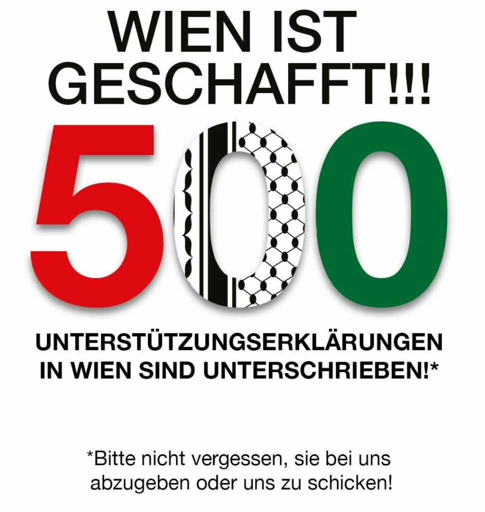 An die 650 Unterstützungserklärungen wurden bisher für die Liste GAZA in Wien abgegeben. Mehr als 550 davon halten wir in Händen.