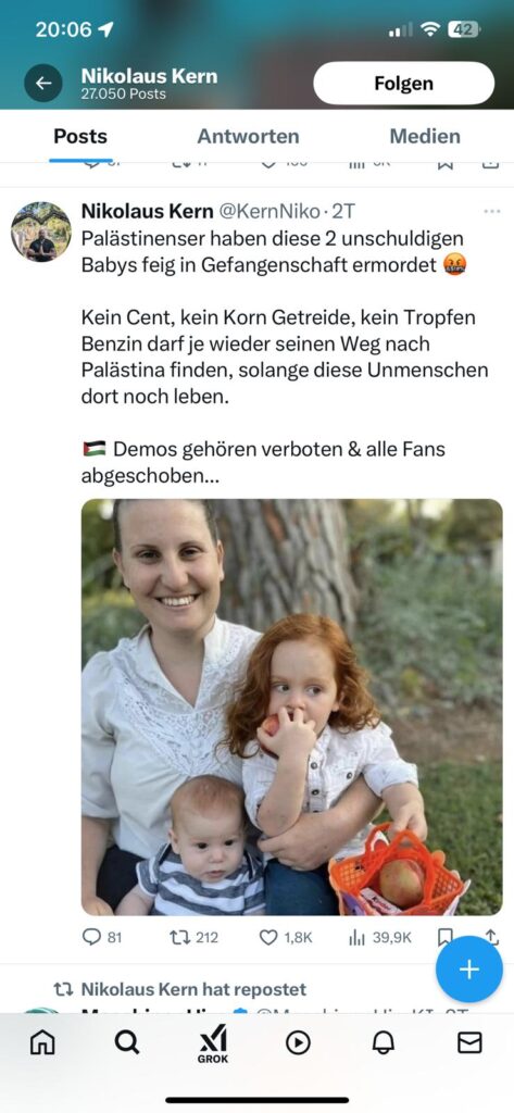 Dazu passend die verächtliche Benennung der Palästinenser als „Unmenschen“.