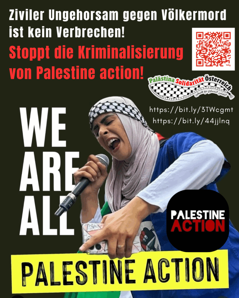 Am 5. Juli 2025, ab 00:01 Uhr, hat die britische Regierung die Menschenrechts- und Protestbewegung Palestine Action per Gesetz zur „terroristischen Organisation“ erklärt. Damit ist bereits der öffentliche Ausdruck von Solidarität – etwa durch das Tragen von Logos oder das Teilen positiver Beiträge – strafbar und kann mit bis zu 14 Jahren Haft geahndet werden.