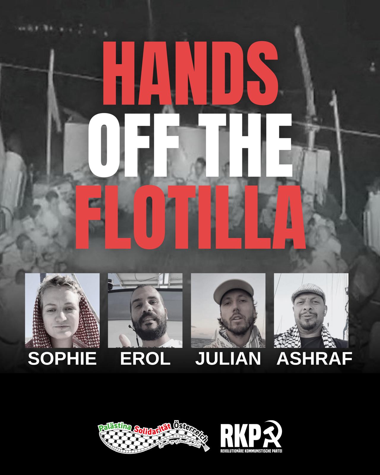 Weiters Taner Aksoy ( Sprecher der Palästinasolidarität Vorarlberg): „Die Schiffe der Flotilla wurden teilweise gerammt, mit Wasserwerfern attackiert und durch Soldaten geentert. Aber all diese Angriffe verblassen im Vergleich zu der täglichen Gewalt Israels in Gaza. Selbst heute Nacht wurde Gaza weiter bombardiert und insgesamt 46 Menschen getötet. Unter den Zielen der israelischen Bomben war eine Schule mit Schutzsuchenden und Zelte vor dem Al-Aqsa Krankenhaus. Das verdeutlicht, dass es keine Zeit zu warten gibt, um den israelischen Völkermord zu beenden! Wir stehen in voller Solidarität mit den Aktivistinnen und Aktivisten und ihrem Versuch, den humanitären Korridor nach Gaza endlich zu öffnen!“
