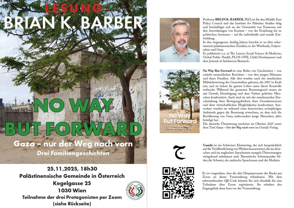 Die deutsche Übersetzung erscheint im Oktober 2025 unter dem Titel Gaza – Nur der Weg nach vorn im Gamila Verlag.