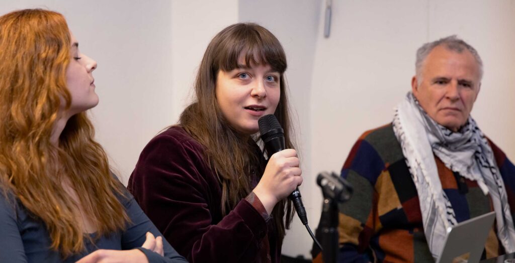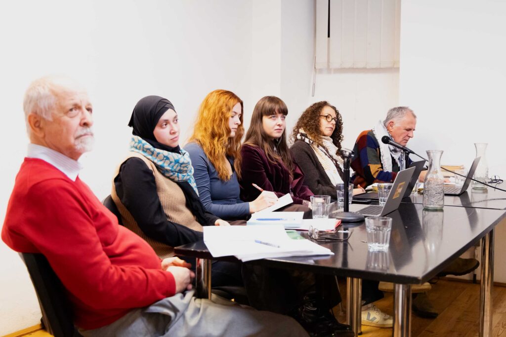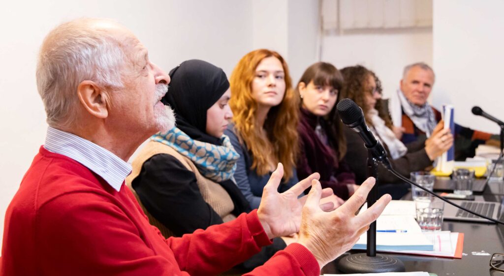 Am 3. Dezember 2025 gestalteten Sali Attia (Lehrerin und Politologin), Albert Reiterer (Gesellschaftswissenschaftler), Franz Sölkner (Steirische Friedensplattform) und Dalia Sarig (Jüdisch Antizionistische Initiative) eine sehr lehrreiche Podiumsdiskussion mit klaren Analysen und erhellenden Kommentaren. Begleitet wurden die Beiträge von Franziska Harbich (Volkswirtin) und Roberta-Maria Ghete (Studentin und Aktivistin) als Moderatorinnen des Abends.