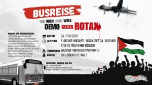 Demo "Palästinasolidarität ist kein Verbrechen! Freiheit für die politischen Gefangenen des österreichischen Staates" Datum: Samstag, 10. Jänner 2026, 14 UhrOrt: Museumstraße 15, 4020 Linz Organisiert von Arabischer Palästina Club Busse von Wien nach Linz werden organisiert. Infos auf der Instagram-Page des APC. ...