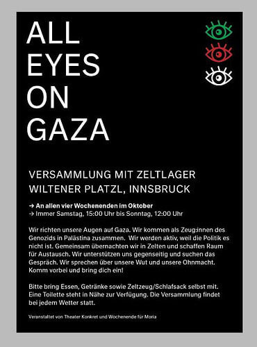 Innsbruck: All Eyes on Gaza – Versammlung + Zeltlager im Oktober