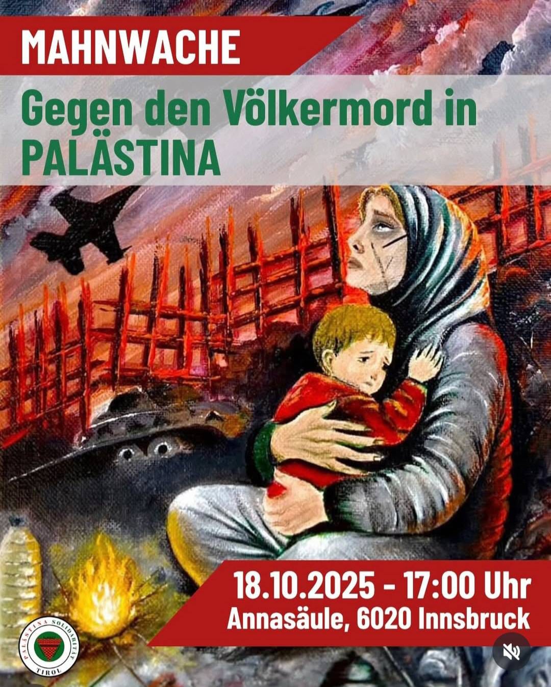 Mahnwache 18. 10, 2025, 17 Uhr, Annasäule, Innsbruck