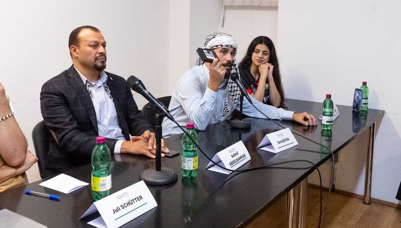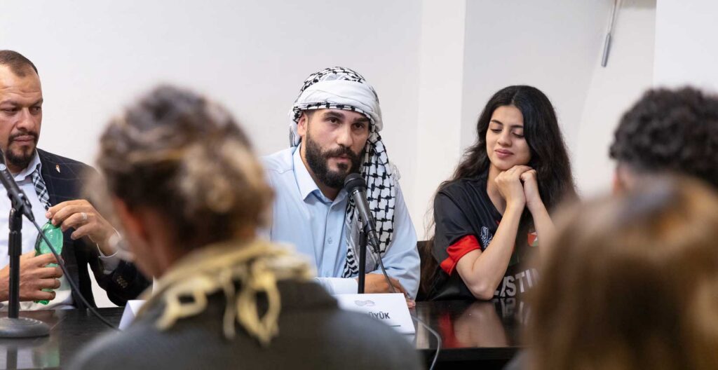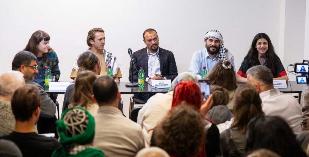 An großer Beliebtheit erfreuten sich die Berichte und Erzählungen der Aktivistinnen der Global Sumud Flotilla. Am 25. Oktober fanden sich über 60 Gäste in unserem Vereinslokal ein und die Veranstaltung war ein voller Erfolg. Ein deutliches Zeichen, dass die Bewegung für ein freies und gerechtes Palästina immer mehr Menschen mobilisiert, in Anbetracht des unbeschreiblichen Grauens des Völkermords durch U(I)Srael und seinen Vasallen.