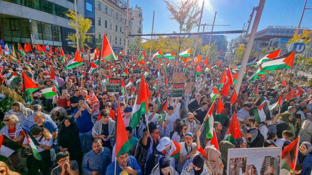 Das hat Wien, das hat Österreich noch nicht gesehen – die größte Demonstration für Palästina aller Zeiten. Am 20. September 2025 von 15:00 bis 18:00 Uhr waren ungefähr 20.000 Menschen auf der Straße um ein sehr deutliches und lautes Zeichen gegen den Völkermord an den Palästinensern zu zeigen.